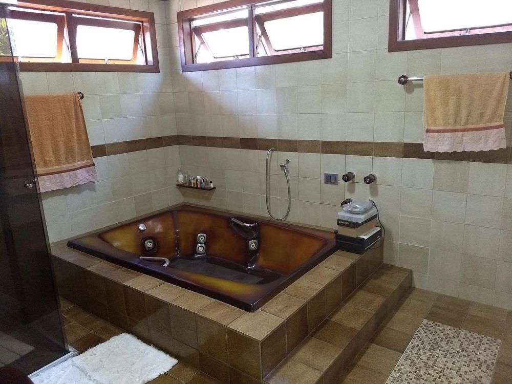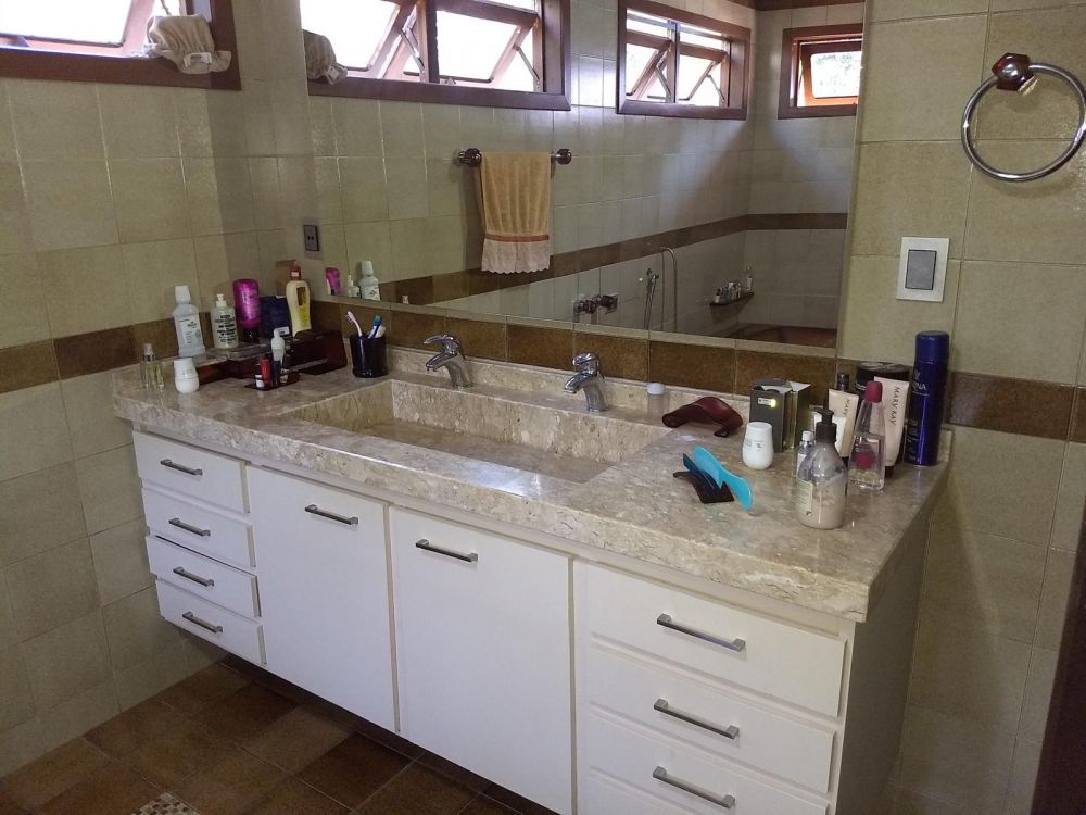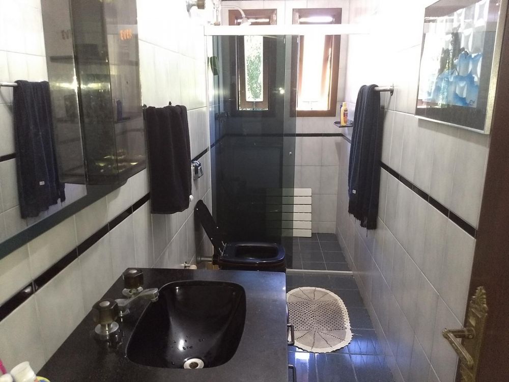 Ampla residência cercada com muros altos, o que lhe confere total privacidade, construída em três niveis, sendo na parte inferior, a garagem coberta para quatro automóveis, depósito, bwc, área de festas, área de serviço e dependêcia de empregada com bwc. No andar térreo living com sala de jantar, sala de estar com sacada, lavabo, cozinha. No andar superior, dois amplos dormitórios, bwc, suite master com sacada, hidro e closet.