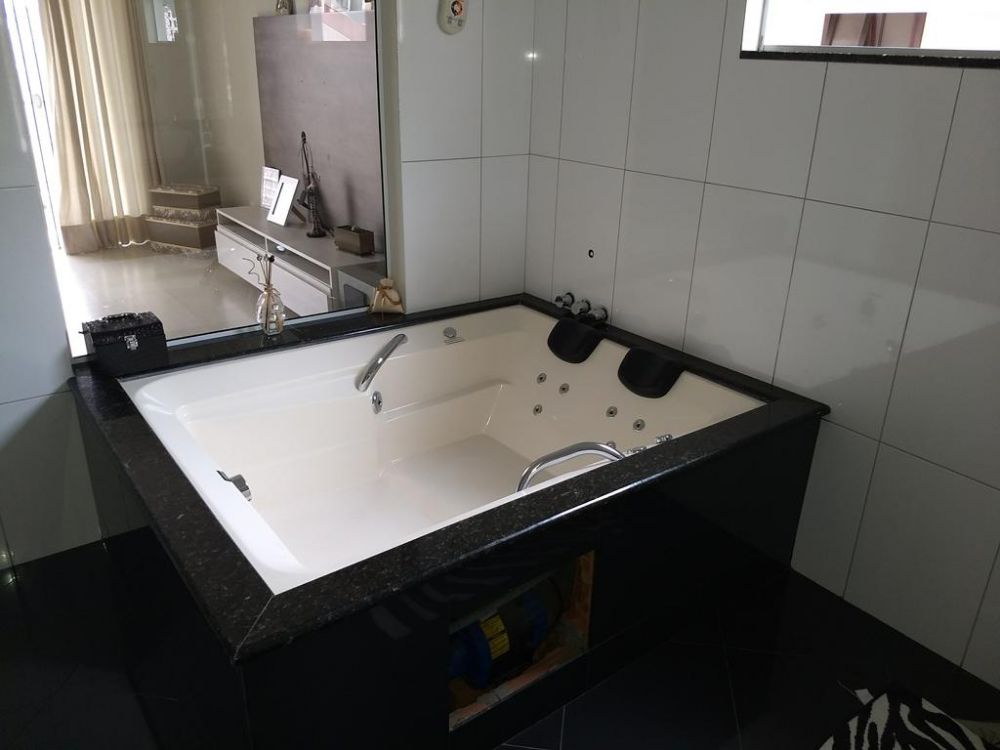 Garagem para 2 veículos, sistema de aquecimento solar, com apoio a gás, CFTV, cerca elétrica, portão eletrônico, muros altos.